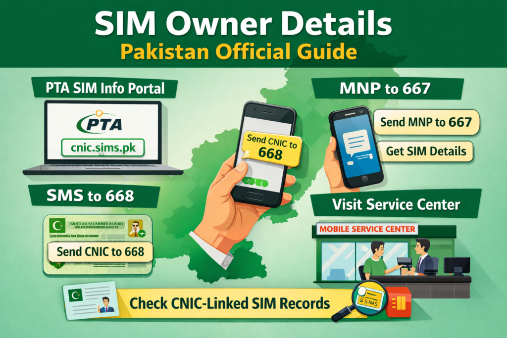 SIM Owner Details – Live Tracker XYZ is a useful informational topic for users who want to understand how mobile registration and CNIC-linked SIM verification systems work in Pakistan. By covering official methods such as the PTA SIM Information System website, SMS 668, MNP to 667, and operator customer service centers, your website can provide valuable, search-optimized, and responsible content that matches user intent while staying on the safe side of privacy and legality. Official PTA resources confirm that the CNIC portal and 668 are used to check SIM counts against a CNIC, while operator guidance confirms that sending MNP to 667 can return the registration details of the SIM being used.